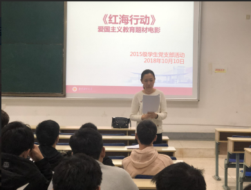 党总支组织2015级学生党支部党员在德经楼117观看了爱国主义教育题材电影《红海行动》。