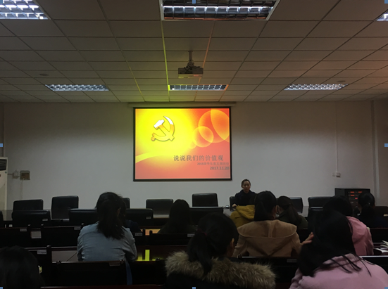 20171120日,沙巴体育 在德经楼308会议室组织了关于“说说我们的价值观”的学生党支部活动。在支部书记董敏老师的组织下,十六名2015级党的发展对象参加了本次讨论会。