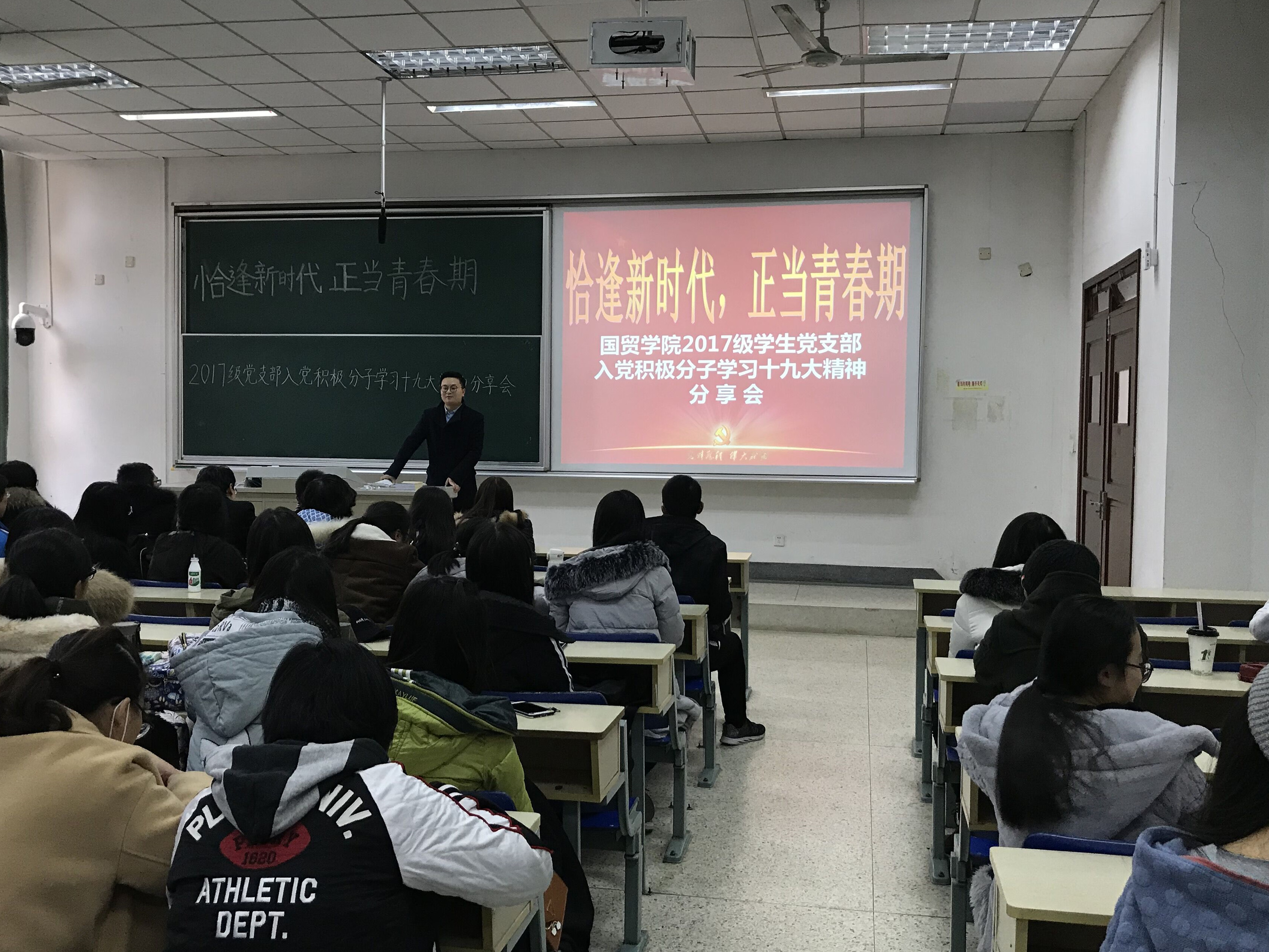 2017级学生党支部与12月6日中午13:00在德经楼Z1-101举办了学习十九大精神分享会。2017级学生党支部书记胡新蕲老师和17级全体入党积极分子参加了此次分享会。