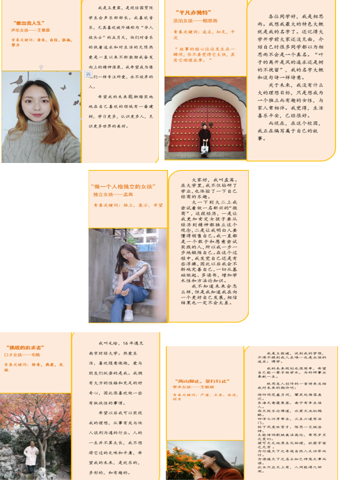 在这一天,我们采访了校园里的许多女生,让她们畅谈对未来的期待、对人生的规划,并选取了五位颇有特色、性格各不相同的女生的发言,编辑成了一份报告。