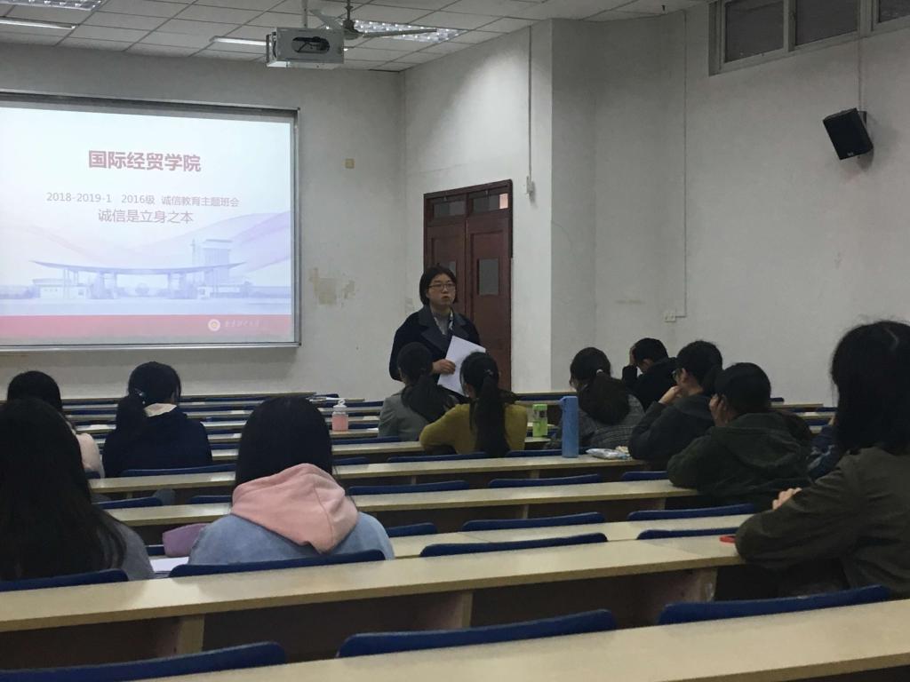 20181115日中午1点,沙巴体育 201662位困难生在德经楼103参加了以“诚信乃立身之本”为主题的班会,班会由辅导员张东霞老师主持。