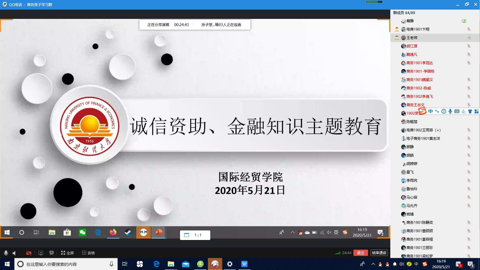 电子商务系19届学生在辅导员的带领下,于5月21日下午展开了一次线上主题班会。