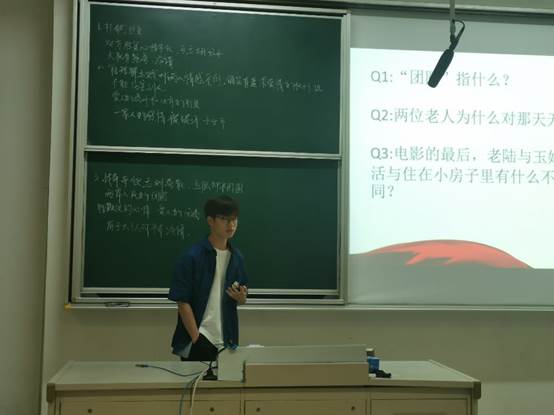 漆黑的教室,电影刚开场,同学们的注意力就完全被荧幕吸引,随着电影荧幕的切换,先辈们的英勇事迹也被缓缓道来。在看完《高山下的花环》时,有同学感叹到“我们离战争太远,但更应铭记有血有肉的战士的牺牲。”在对于电影《团圆》的讨论中,有同学说到关于影片中“团圆”的意义:“刘燕生的到来是想他与玉娥团圆,但这样的团圆却破坏了玉娥和老陆这一家庭的团圆,这注定是在当时的时代背景下无法圆满的遗憾。”