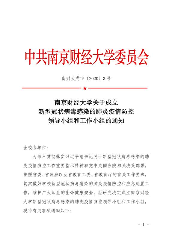 南京财经大学关于成立新型冠状病毒感染的肺炎疫情防控领导小组和工作小组的通知
