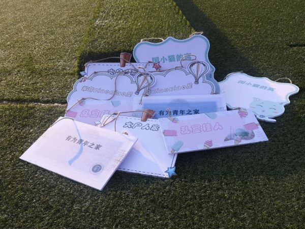 一进德经楼三楼草坪,视线立刻被一个可爱的房子吸引住,房子的左上角有三个框,新生们可以拼出自己宿舍号,并和舍友们一起在门前留下第一张小家的合影。这个特殊的小家拍照墙原来是商务1902班的吴雪同学专门为萌新们手绘设计的,她希望国贸院的小萌新们在陌生的环境依旧可以有“家”的感觉。为了争做“最‘赞’国小猫”,新生们拿着手机与“新家”竞相“三连”,一副势必将光盘新食尚、智慧收纳册、蓝色保护罩等礼物纳入囊中的架势。其中最受萌新喜爱的当属“光盘新食尚”。它是一份由沙巴体育
