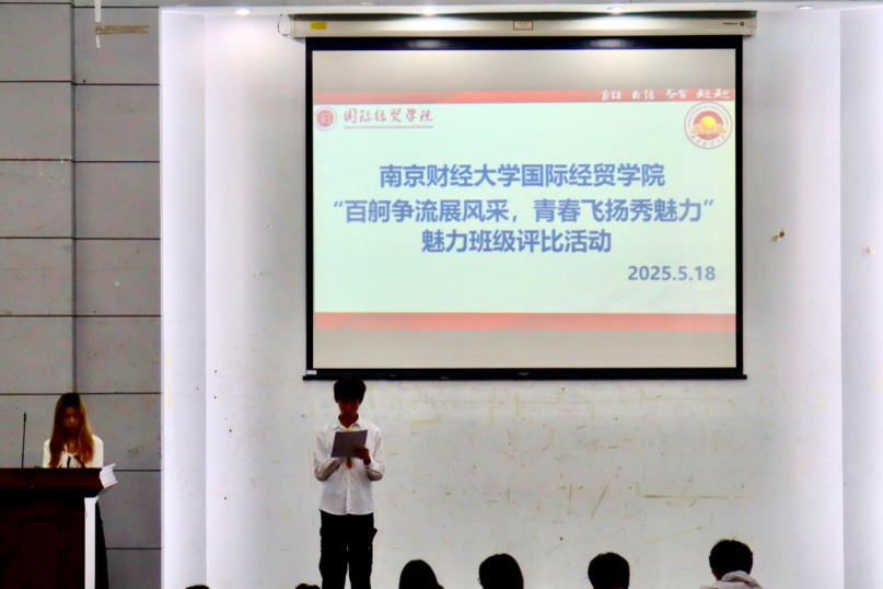 在仙林校区德经楼二楼报告厅举办“百舸争流展风采,青春飞扬秀魅力”魅力班级评比活动,学生会主席辜晗喆、包金宇、郑诗薇,分团委副书记何京豫、李颜甫担任评委,24级各班团支书通过述职汇报与才艺展示诠释班级特色。