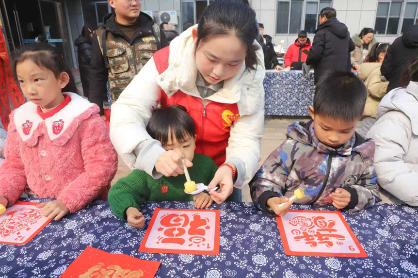 活动期间贺诗颖志愿者指导小朋友拓印
