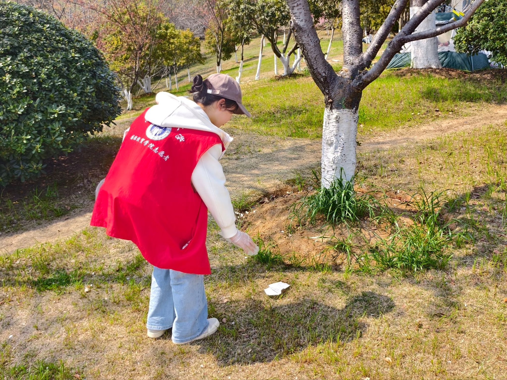 组织师生志愿者前往栖霞区羊山公园开启 “春晖拾绿· 清明行” 实践,面对春日游人如织的草坪、步道与树丛散落的垃圾,大家佩戴手套、手持清洁工具分工协作,弯腰捡拾分类收纳,从赏景游客转变为环境守护者,以实际行动诠释主动担当的志愿服务精神,同时践行文明出游理念。净山结束后,师生们漫步园中,定格迎春花、樱花、木绣球与三色堇交织的春日美景,在感知自然节令的同时,也以 “风把樱花吹成雪,我把春天折进纸里” 的心境,体会清明承载的对生命、自然与情感的深沉思考。