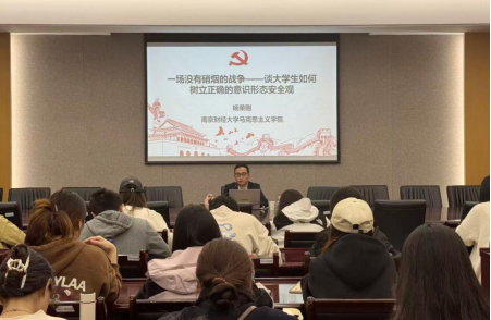 杨荣刚老师分析了当前意识形态工作面临的形势与挑战。他指出,当前意识形态渗透呈现出样态感性化、载体网络化、方式精准化等新特点,尤其是在高校这一意识形态斗争的前沿阵地,大学生容易受到良莠不齐信息的影响。他列举了当前意识形态渗透的五大重点领域,提醒同学们要增强辨别力,筑牢思想防线。