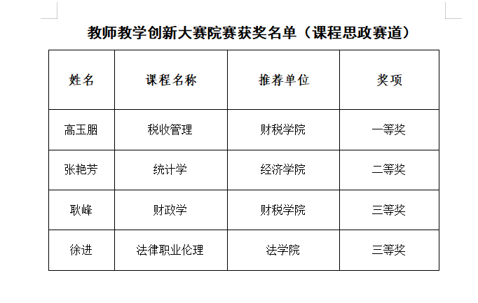 根据《关于举办南京财经大学教师教学创新大赛院赛的通知》要求,沙巴体育 于2025年10月22日举办了南京财经大学教师教学创新大赛院赛(课程思政赛道)。经教学创新成果报告评审、现场评审环节,评选出一等奖1人,二等奖1人,三等奖2人,现予以公示。如有异议,请在公示期内反映。
